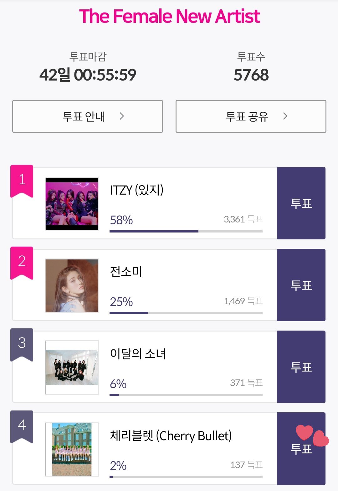 Cherry Bullet International On Twitter Scroll For The Category The Female New Artist Category And Find Cherry Bullet Currently 4th Click Vote You Will Be Led To A Page Were Yiy Would